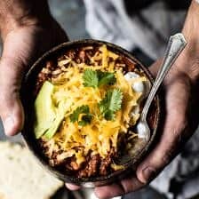 You guys remember how my family and I did a little snowmobiling day last week? While I got this chili started in the morning and when we came home it was ready and waiting. Which was perfect because we were all tired and starving. Below I’ve gathered up a list of my 20 favorite winter crockpot recipes. Some are a little indulgent, while others are on the very healthy side. For those of you planning your healthy come back after New Years, don’t worry, tomorrow’s post is all about the healthy eats!