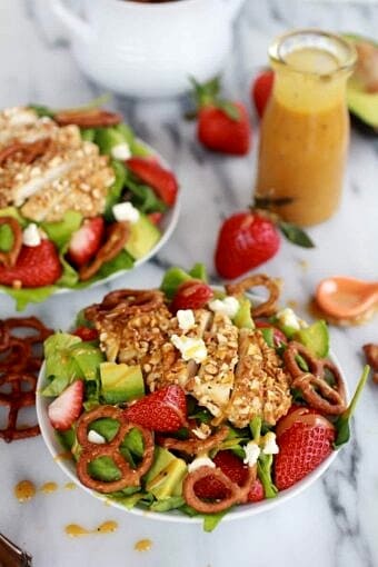 Save RecipeMain CourseApril 8, 2013Honey Mustard Pretzel Crusted Chicken Salad with Spicy Honey Mustard Dressing