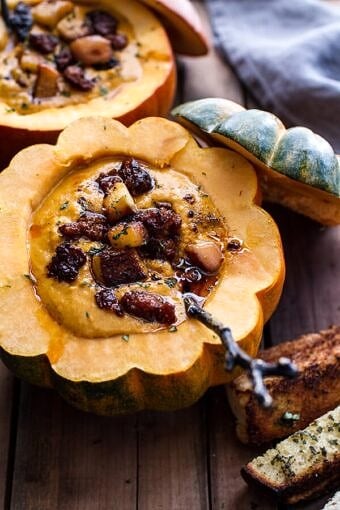 Save RecipeMain CourseNovember 10, 2014Chipotle Pumpkin Soup with Crispy Chorizo + Caramelized Apples.
