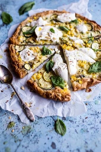 Save RecipeMain CourseAugust 20, 2015Zucchini and Roasted Sweet Corn Provolone Phyllo Pizza with Truffle Oil.