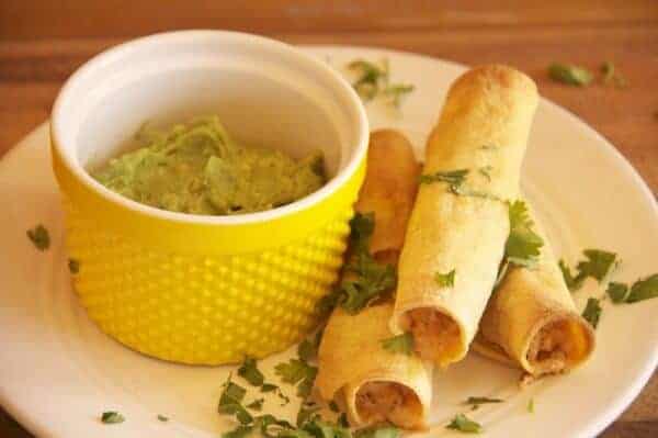 *To freeze: Place the prepared taquitos on a pan lined with wax paper. Place into the freezer and freeze solid, ~2 hours, and then transfer to a large zip top bag. Bake frozen for 25 minutes at 425 degrees.