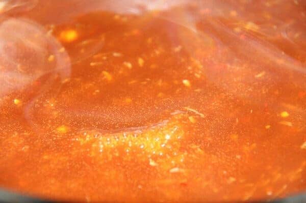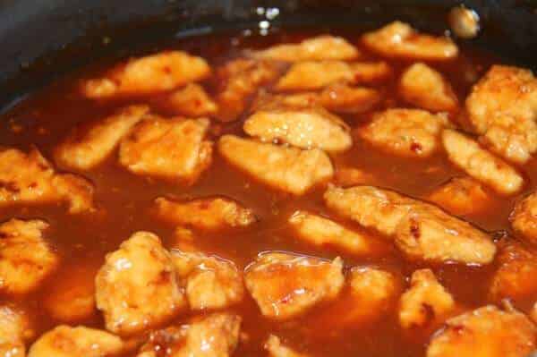 Once you have begun to “fry” your chicken the sauce comes together in no time. Just combine all your ingredients and simmer until thickened slightly.