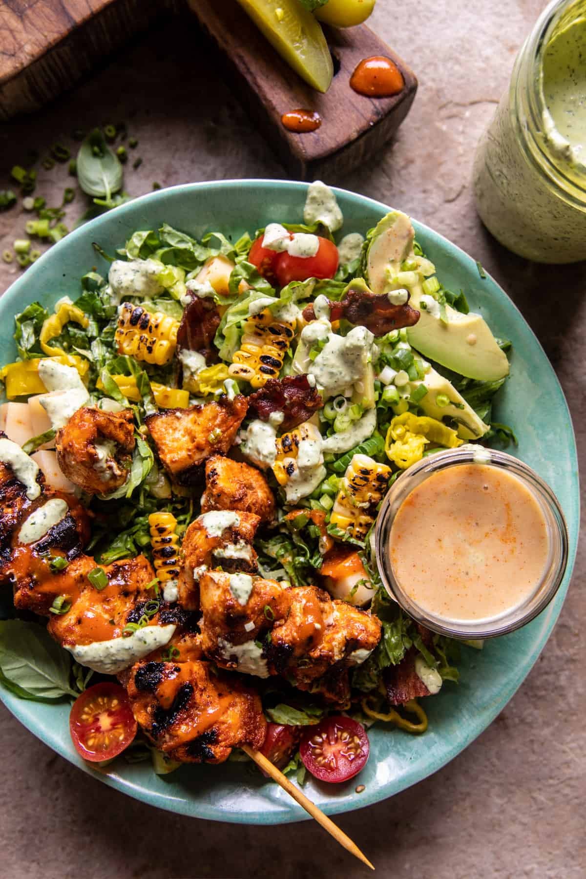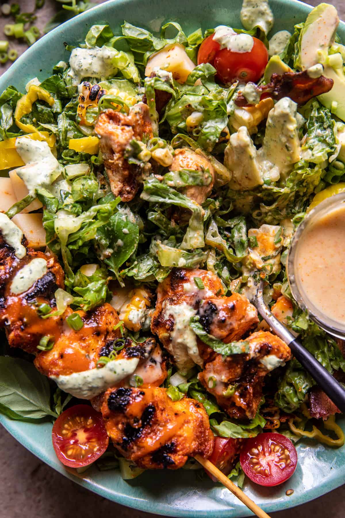 Chopped Buffalo Chicken Skewer Salad | halfbakedharvest.com