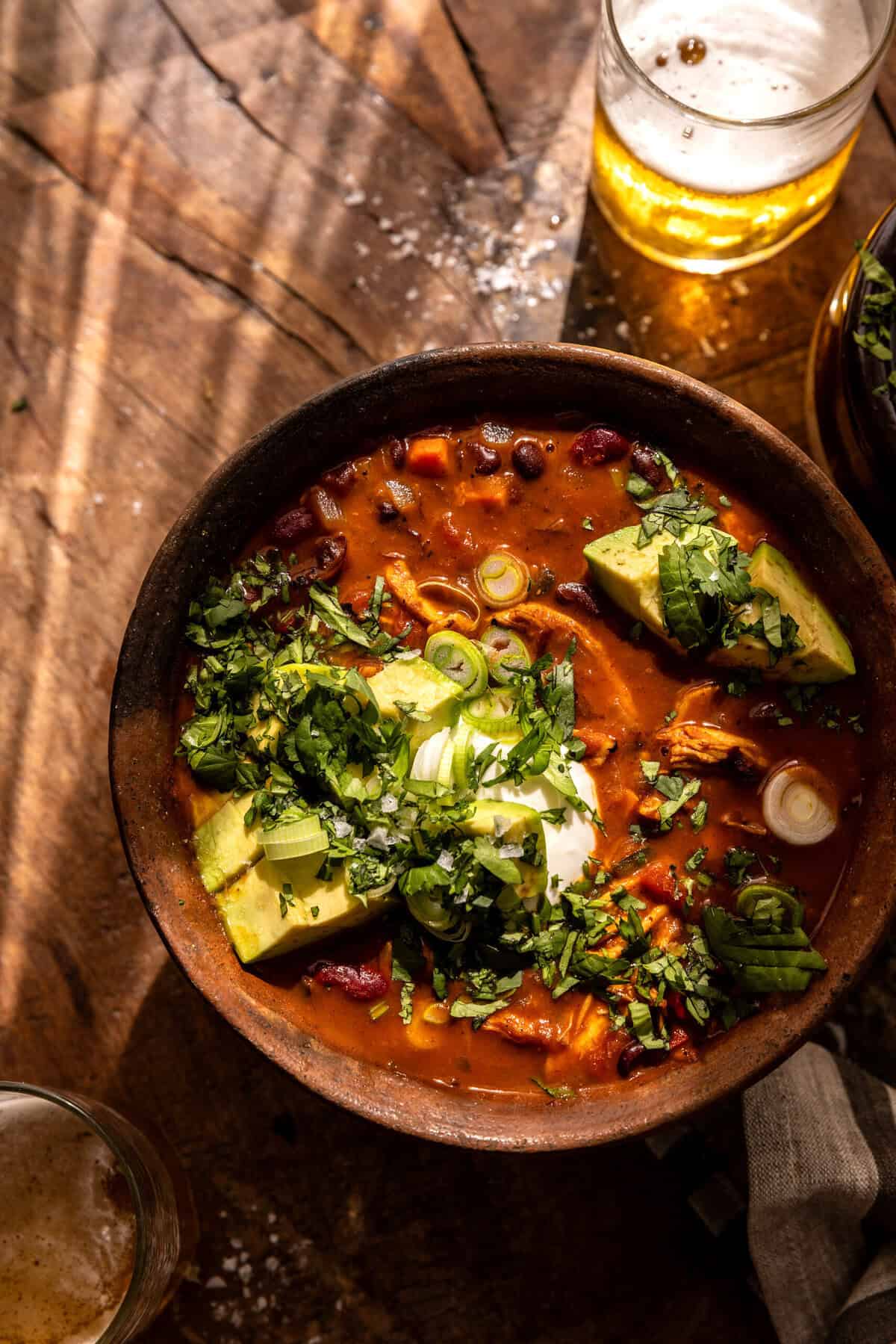 I love cooking the chicken directly in the chili. It keeps things simple and makes the broth even more delicious.