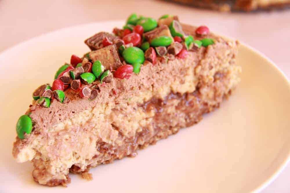 This was the first time I have ever baked a cheesecake…and it turned out great. I couldn’t find chocolate red/green m&ms…used peanut butter red/green instead. This recipe may just become a Christmas tradition now. Thank you!