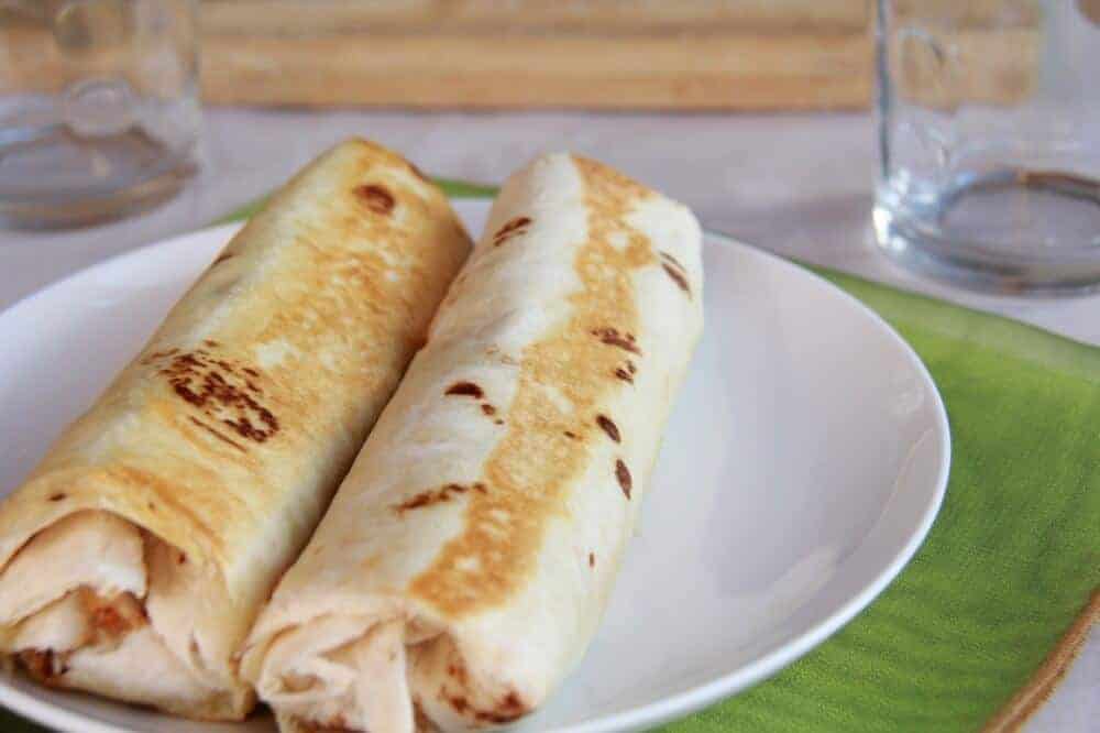 - Heat a skillet with a little oil. Lightly crisp each wrap, turning to get all sides.
