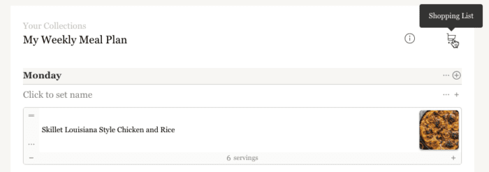 - To generate a shopping list for your meal plan or saved recipes, navigate to โYour Collectionsโ and then select your meal plan or saved recipes folder.