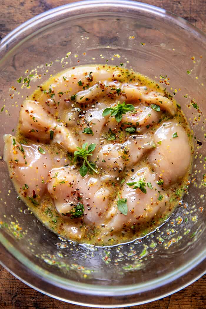 The dressing is the heart of this recipe. As the chicken grills in it and then the hot orzo gets tossed up with it too.