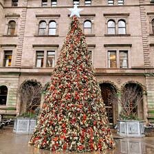 I stayed at the New York Lotte Palace, which is on Madison Avenue, just a few blocks from Rockefeller Center. The main reason I stayed here was for their holiday decorations, which did not disappoint. The tree in the hotel’s beautiful courtyard gives the Rockefeller Center tree a run for its money. In my opinion, the Palace’s tree is prettier. It’s classic, with white lights and vintage ornaments. In addition to the tree, the inside of the hotel is lit up with mini trees throughout the lobby. There are festive little lights and garland everywhere. It could not have been prettier or more festive. And of course, the hotel itself is wonderful as well. The staff was so kind, which I found very helpful throughout my four-night stay.