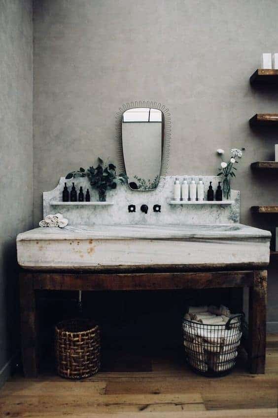 As I mentioned above, I’m working on doing a few more things for myself. One of the things I’ve been wanting to do is replace the vanity in my bathroom. It’s a vintage piece that sadly is not very functional. Since I spend a good amount of time washing my face and doing my daily skincare. I’ve been wanting to install a new vanity with a larger sink area. I spent some time last night scouring Pinterest for inspiration, here are some of the bathrooms I love most.