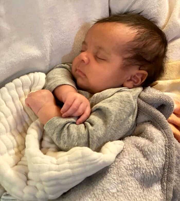 Oslo, fast asleep in my cousin Maggie’s arms