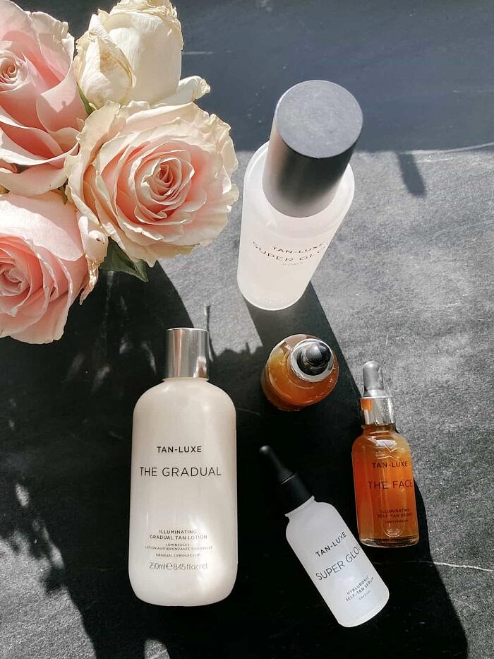 lovingโฆTan Luxe. I recently start using the face drops, body drops, and then also the gradual tan lotion. Iโm loving the added color on my skin. Equally awesome is that there is no weird residue or orange hands.