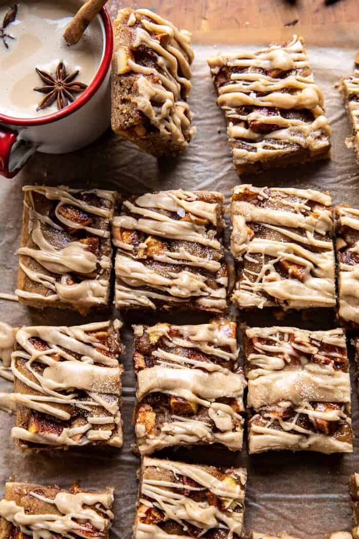 Brown Butter Apple Blondies with Cinnamon Maple Glaze