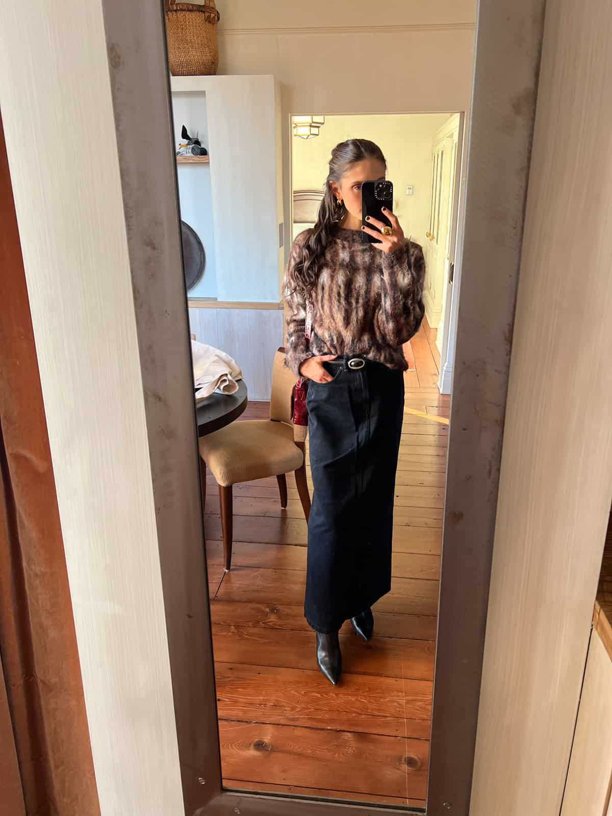 I love the outfit you’re wearing in the photo for ulta! Can you give details for the fur sweater, long skirt, shoes, accessories? It’s the perfect cozy, chic ensemble!