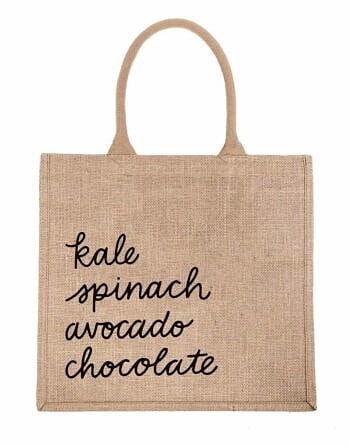 The Purposefull tote is spells out 4 of my favorite ingredients. This handmade bag is water-resistant and sewn with sustainable jute fabric by artisan women in Bangladesh.