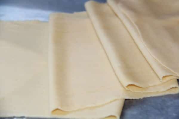 This is a very simple egg pasta dough that comes together in minutes. I really like the texture of this dough and it rolls out beautifully. If your dough seems too crumbly to roll out just add some water, a teaspoon at a time. Be careful not to add too much water though, you do not want your dough to become sticky and stick to your pasta roller.