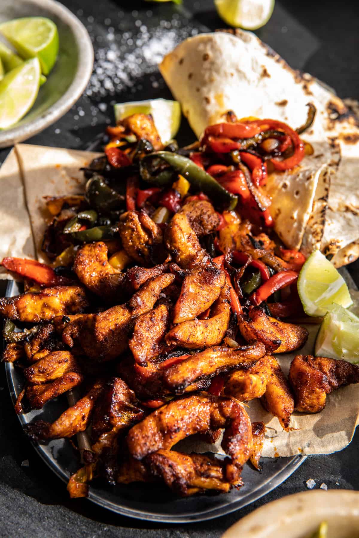 1. Hey Cindy! To make this in a crockpot, layer the sliced peppers and onions on the bottom with the seasoned chicken on top, then cook on low for 6–7 hours or high for 3–4 hours. Once the chicken is done, shred it and return it to the slow cooker so it absorbs the flavors, and add fresh toppings like guacamole, salsa, or cilantro just before serving. Hope you enjoy! 🙂 xT