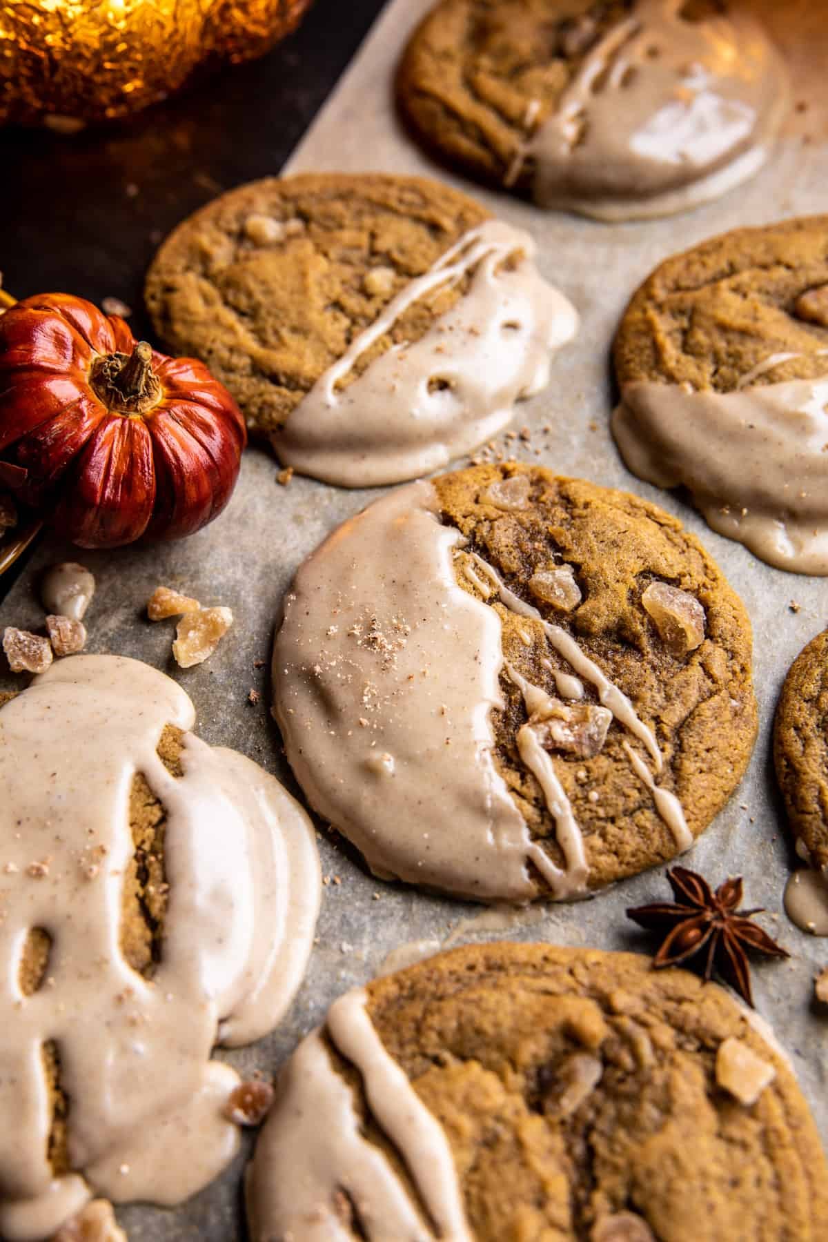 Chewy Pumpkin Spice Ginger Cookies with Brown Butter Icing