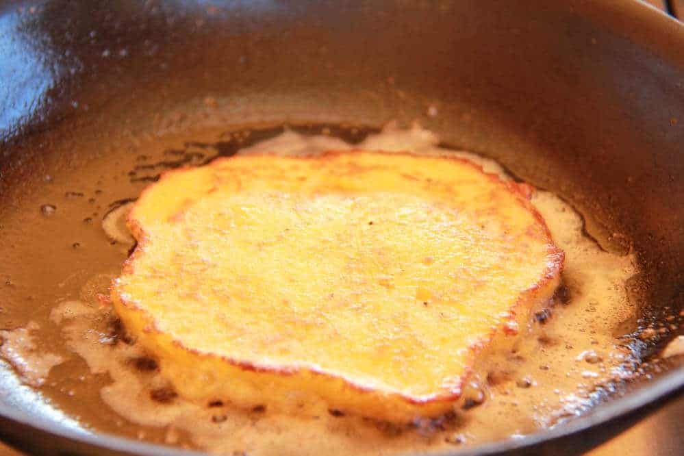 • Heat a small skillet on the stovetop, add butter or cooking spray.