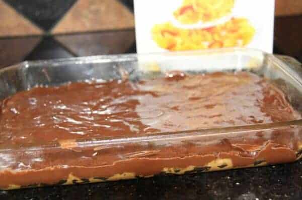 - Spread chocolate on top of Corn Flake mixture