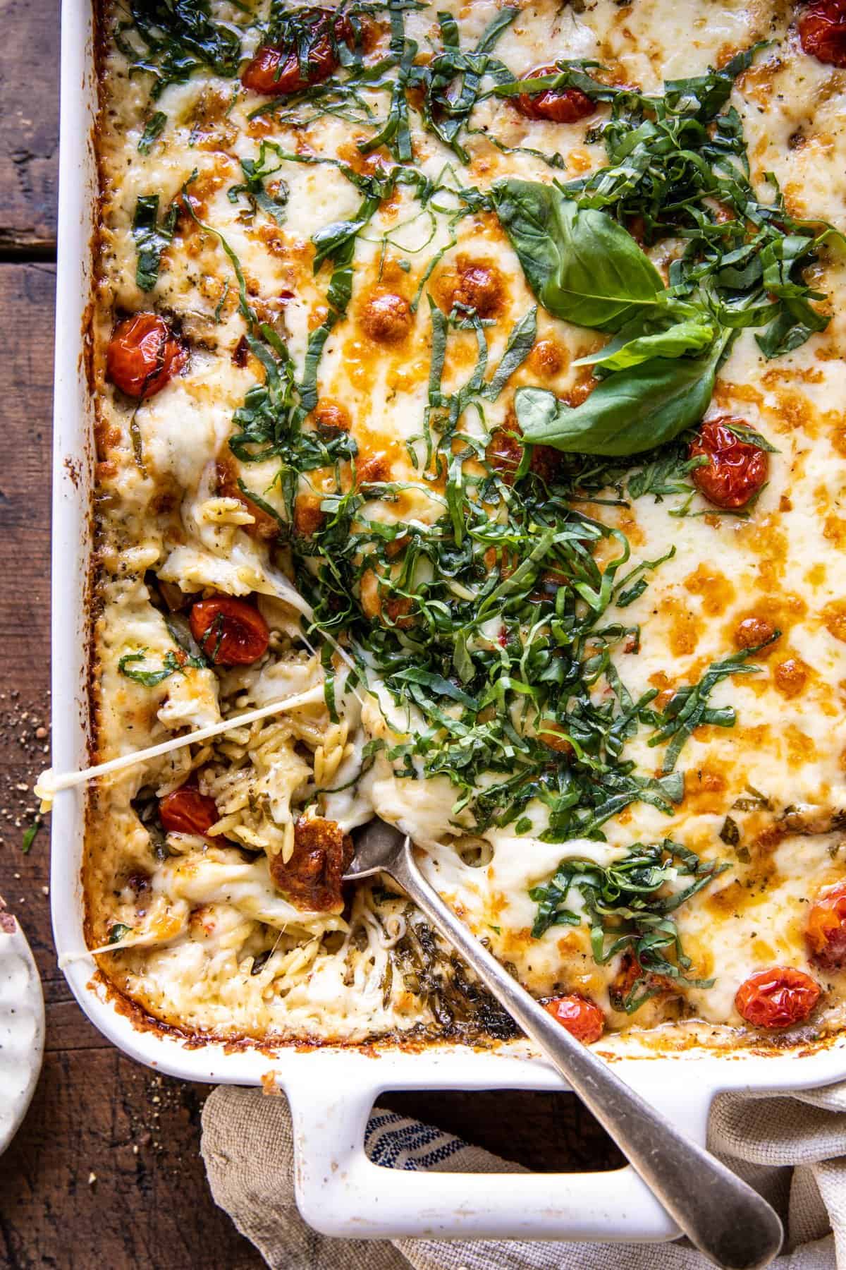 bonus: 26. Easiest One Pan Caprese Pesto Orzo Bake