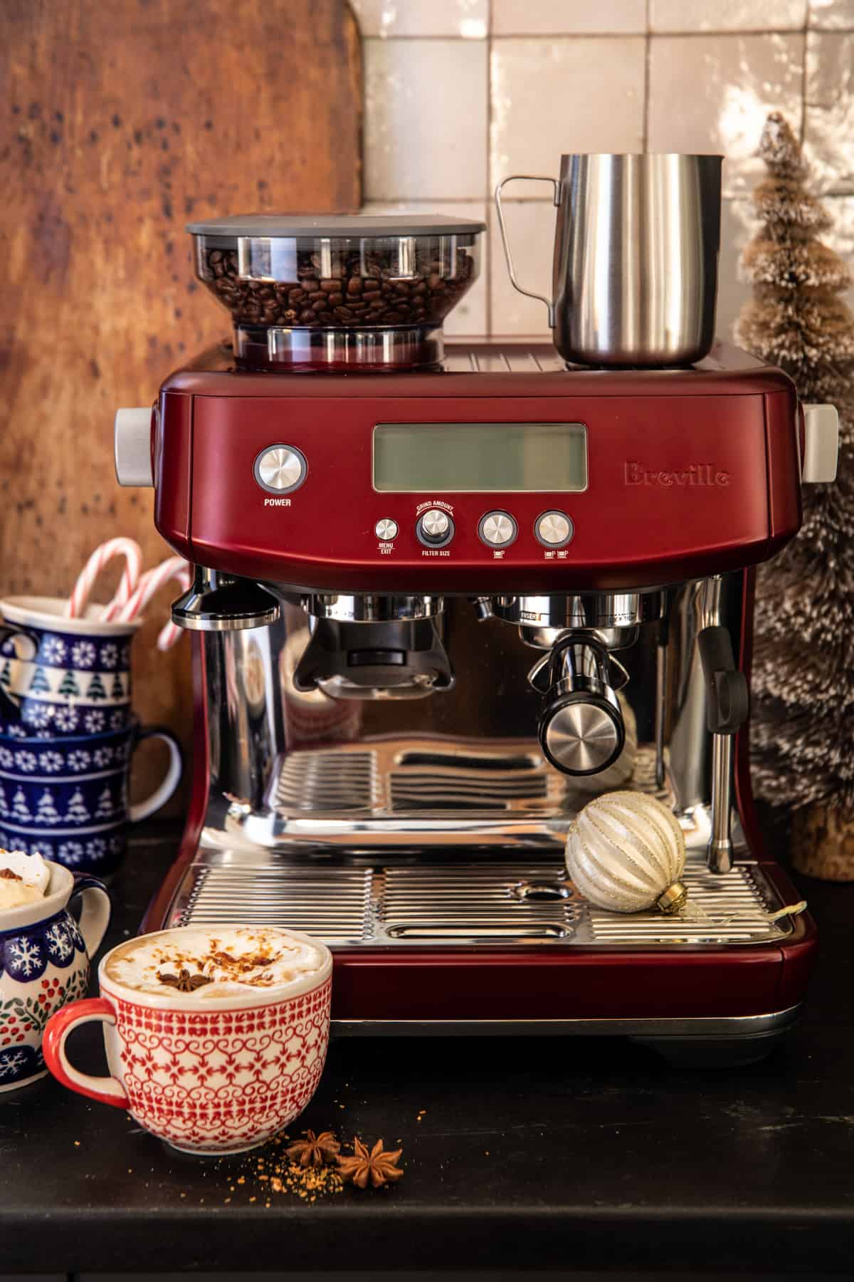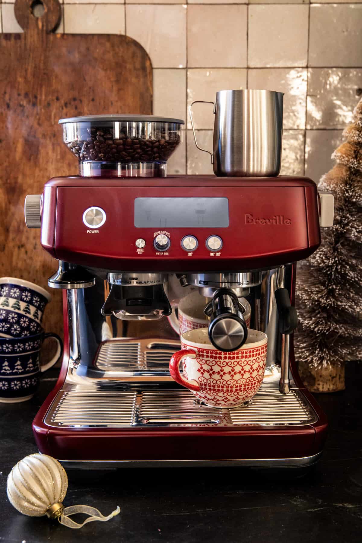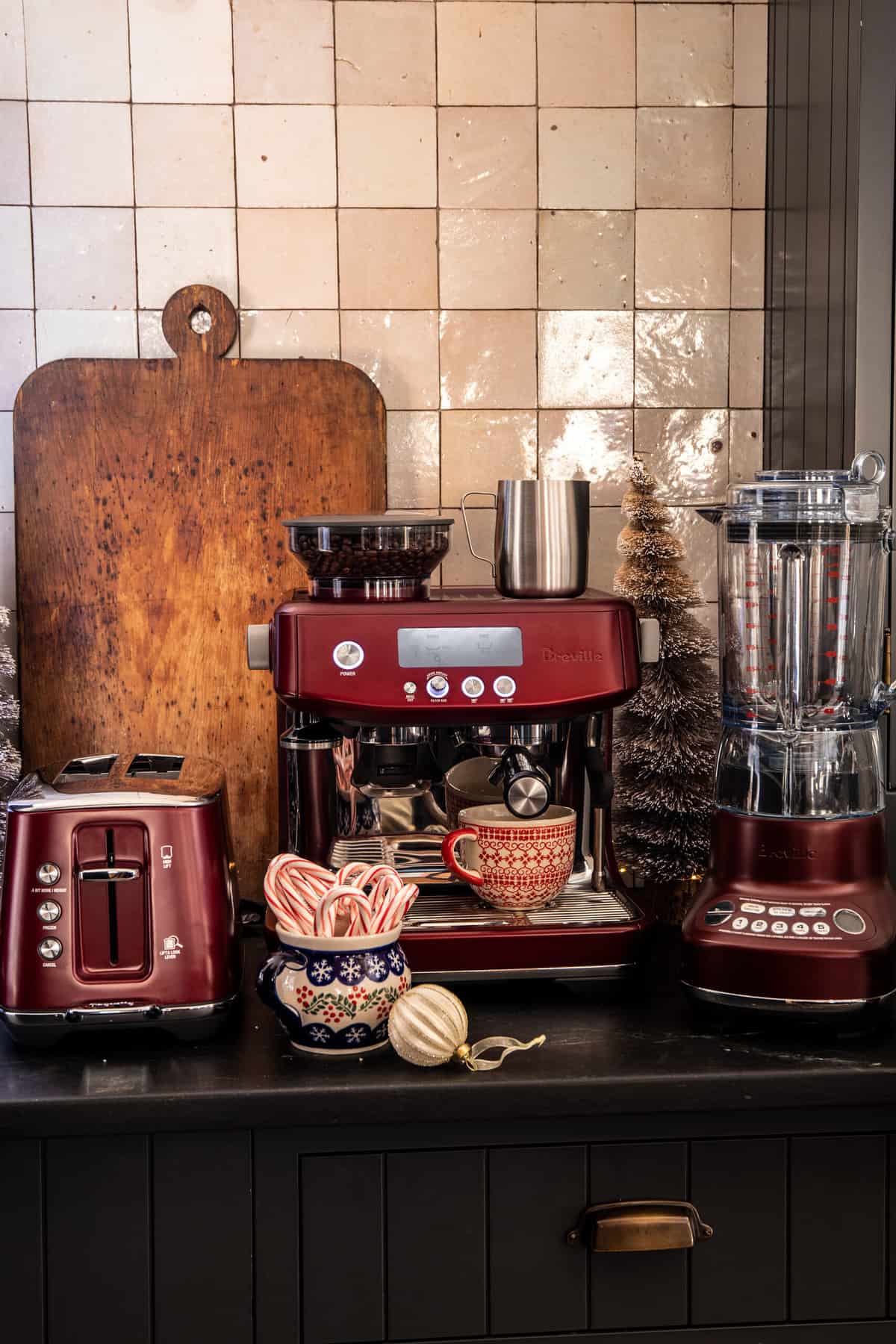 We’re getting so close to Christmas! Yes, we all know how excited I get this time of year. So you can guess just how thrilled I am to partner with one of my favorite brands, Breville. I’m sure you’ve all heard me go on about just how much I love my Breville espresso machine. So when I had the opportunity to receive the new (and gorgeous) Red Velvet Cake collection, I was of course on board.